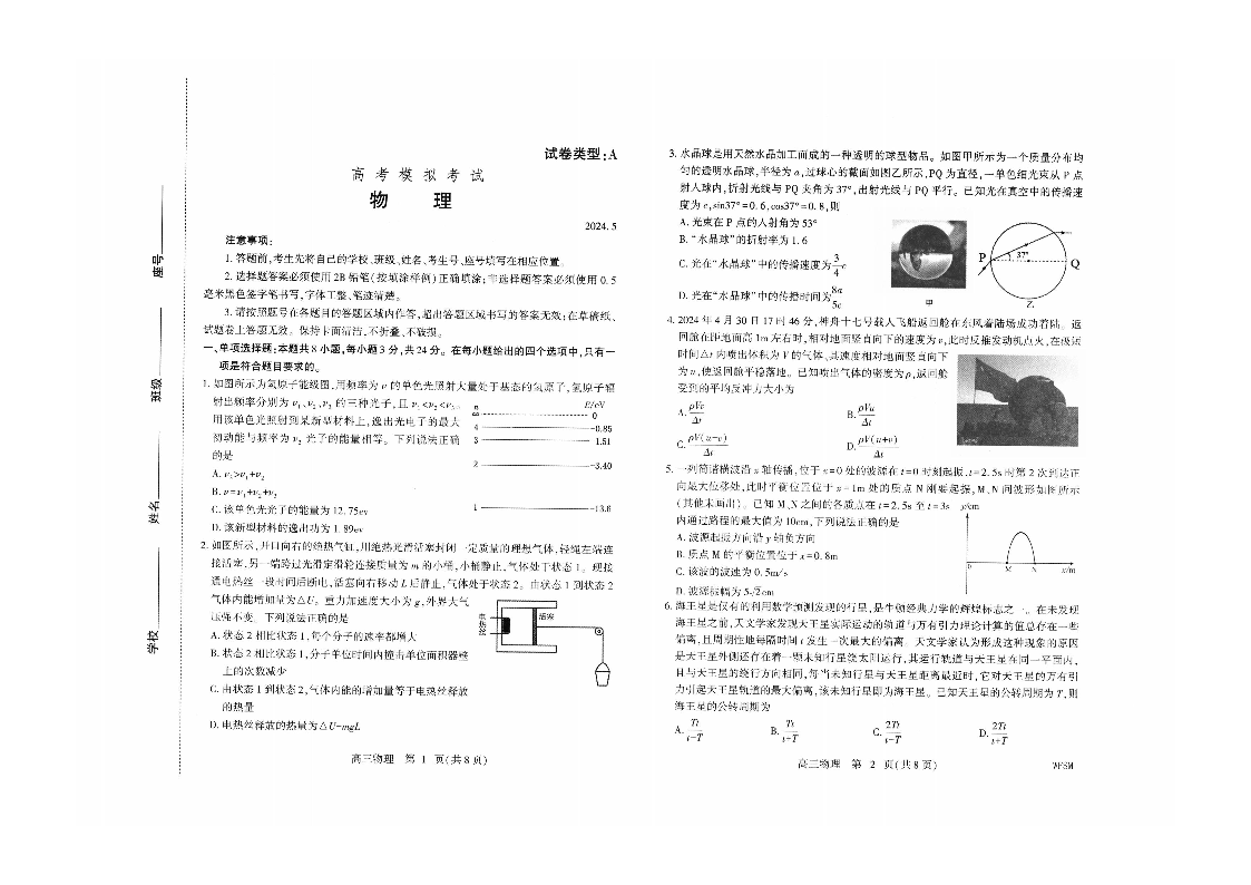 山东省潍坊市2024.5高三年级第三次模拟物理