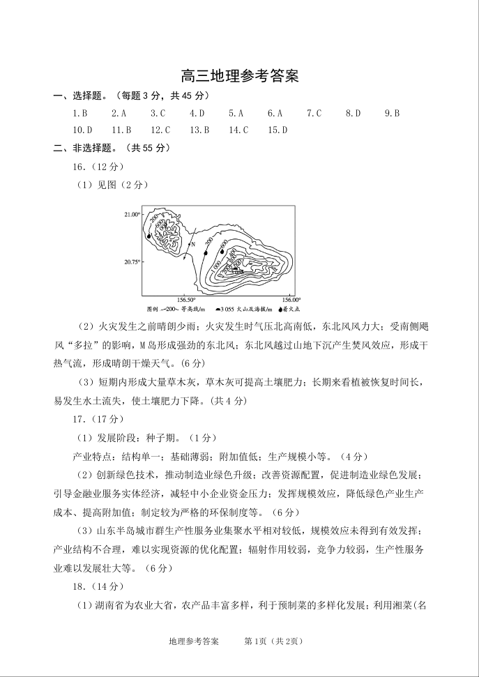 山东省潍坊市区域2024.6高三年级考前热身卷地理答案