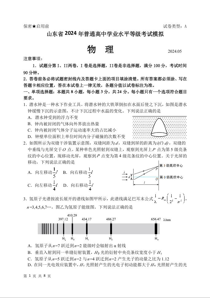 山东省潍坊市区域2024.6高三年级考前热身卷物理