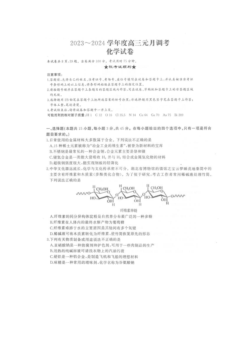 湖北省武汉市江岸区2023-2024学年高三上学期元月调考 化学