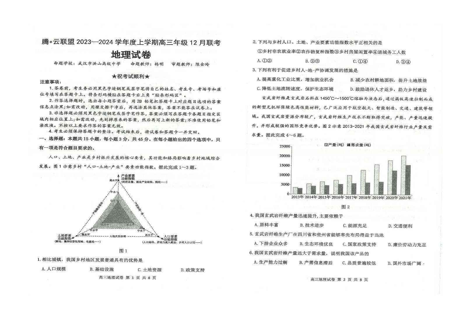 湖北省腾云联盟2023-2024学年高三上学期12月联考 地理