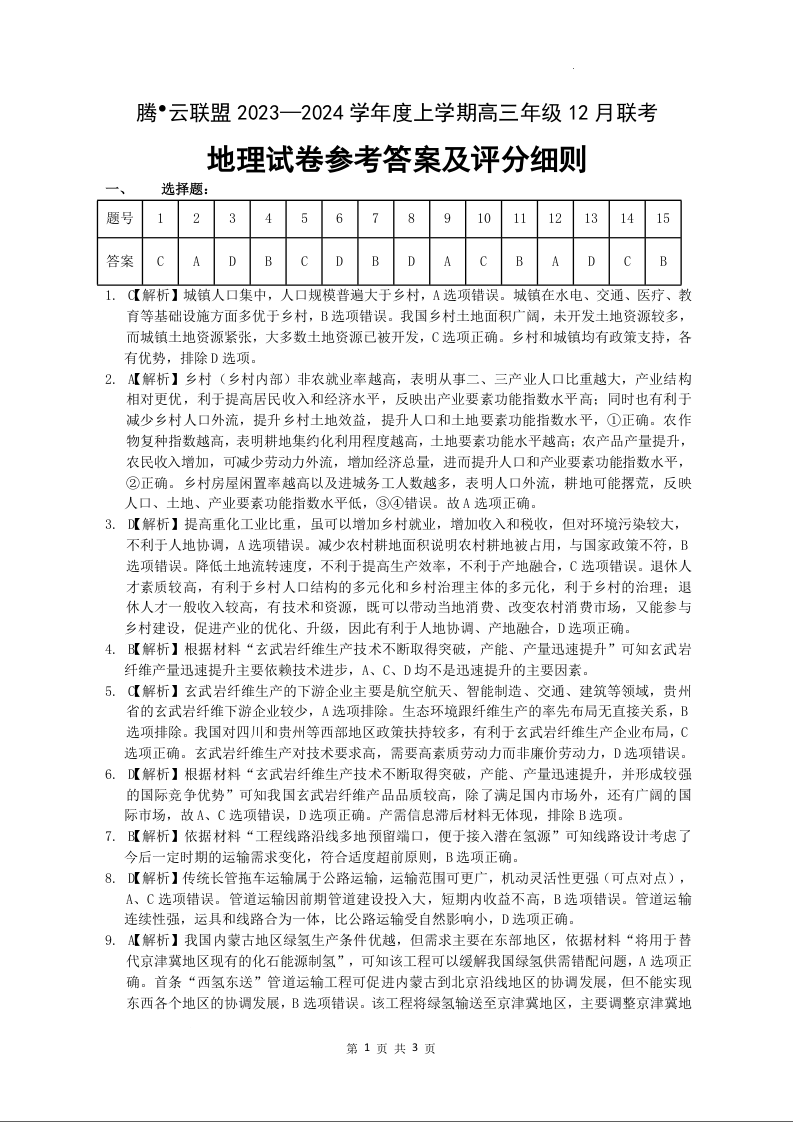 湖北省腾云联盟2023-2024学年高三上学期12月联考 地理答案