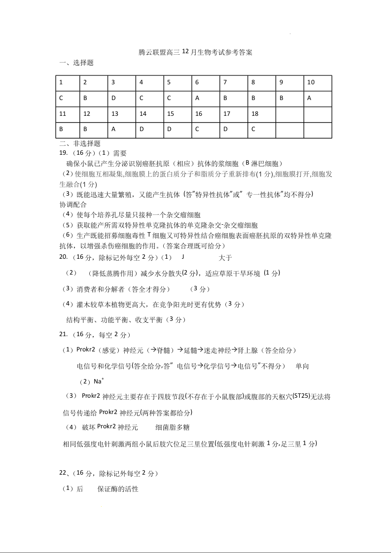 湖北省腾云联盟2023-2024学年高三上学期12月联考 生物答案