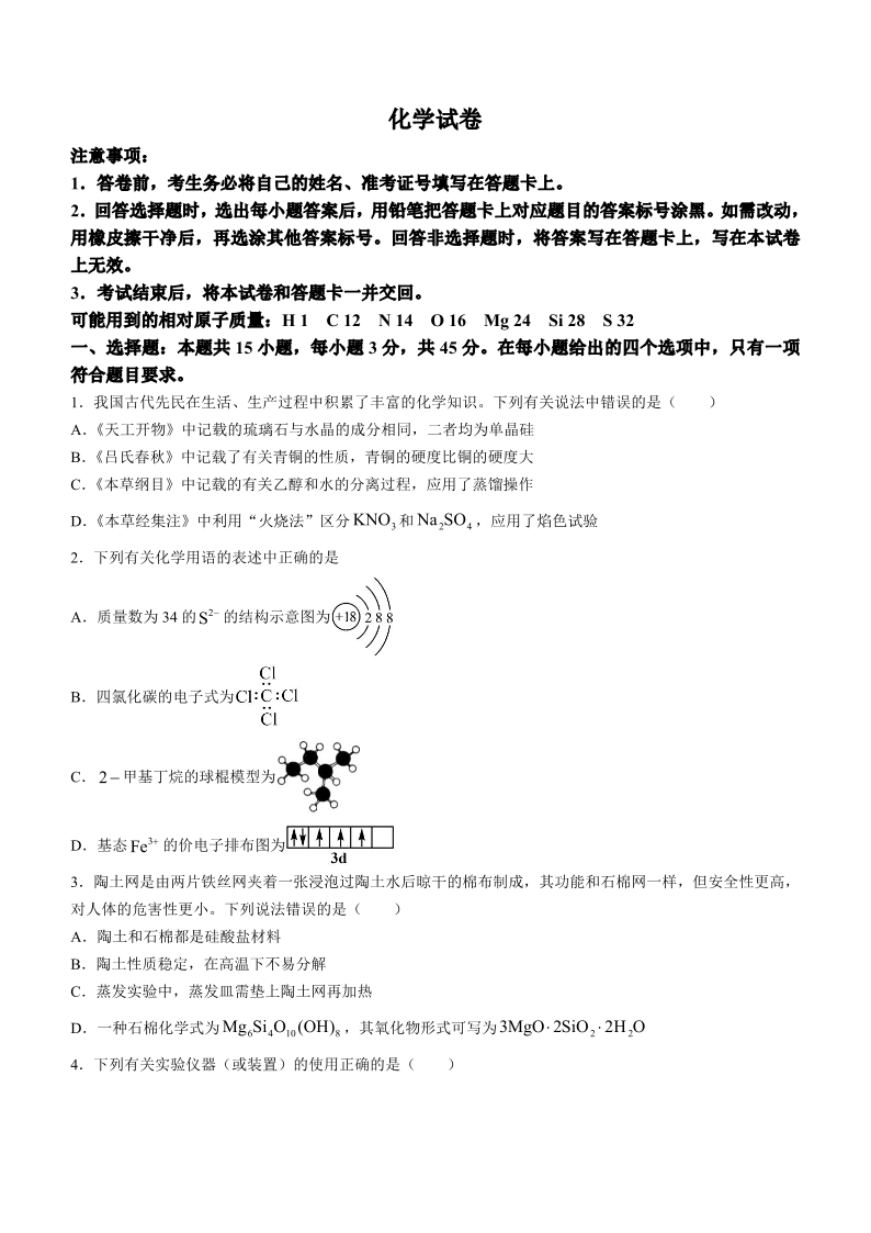 湖北省高中名校联盟2024届高三第二次联合测评 化学