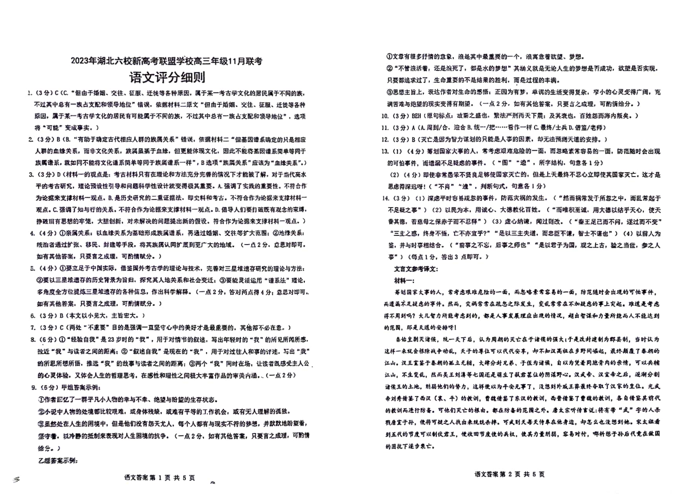 湖北省六校新高考联盟学校2023-2024学年高三上学期11月联考 语文答案