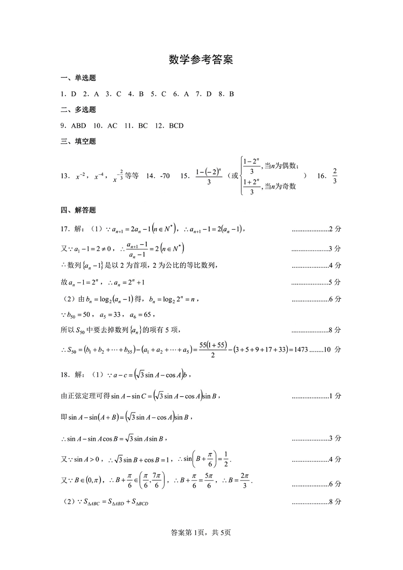 腾云联盟2023-2024学年度上学期高三年级十月联考 数学答案