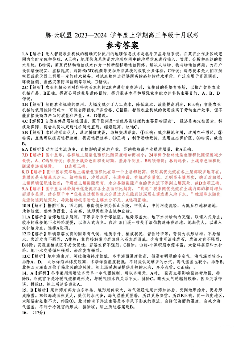 腾云联盟2023-2024学年度上学期高三年级十月联考 地理答案