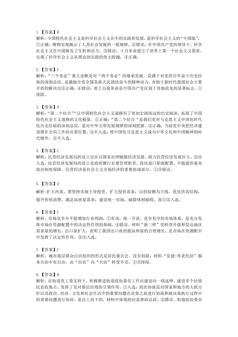 湖北省重点高中智学联盟2023-2024学年高三上学期10月联考 政治答案