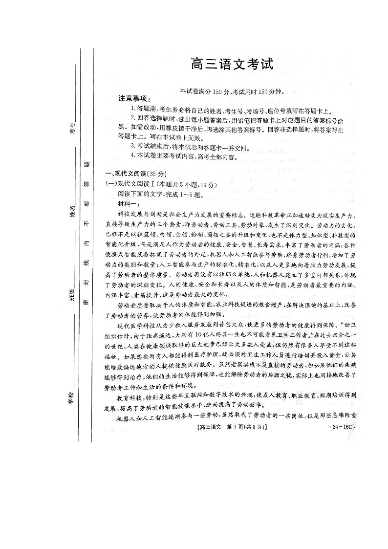 湖北省部分学校2023-2024学年高三上学期10月月考 语文