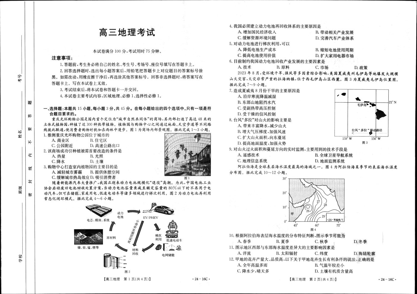 湖北省部分学校2023-2024学年高三上学期10月月考 地理