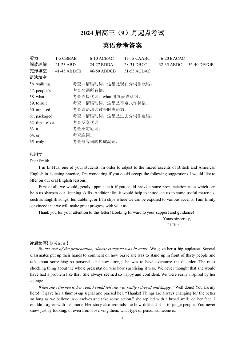 湖北省宜荆荆恩2023-2024学年高三上学期9月起点考试 英语答案