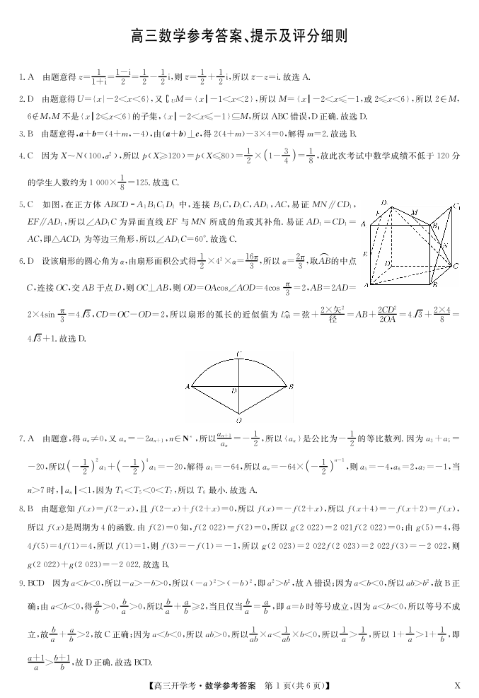 湖北省2024届高三上学期8月开学考试 数学答案