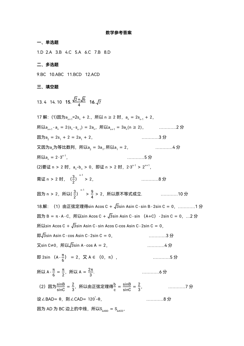 湖北省腾云联盟2023-2024学年高三上学期8月联考 数学答案