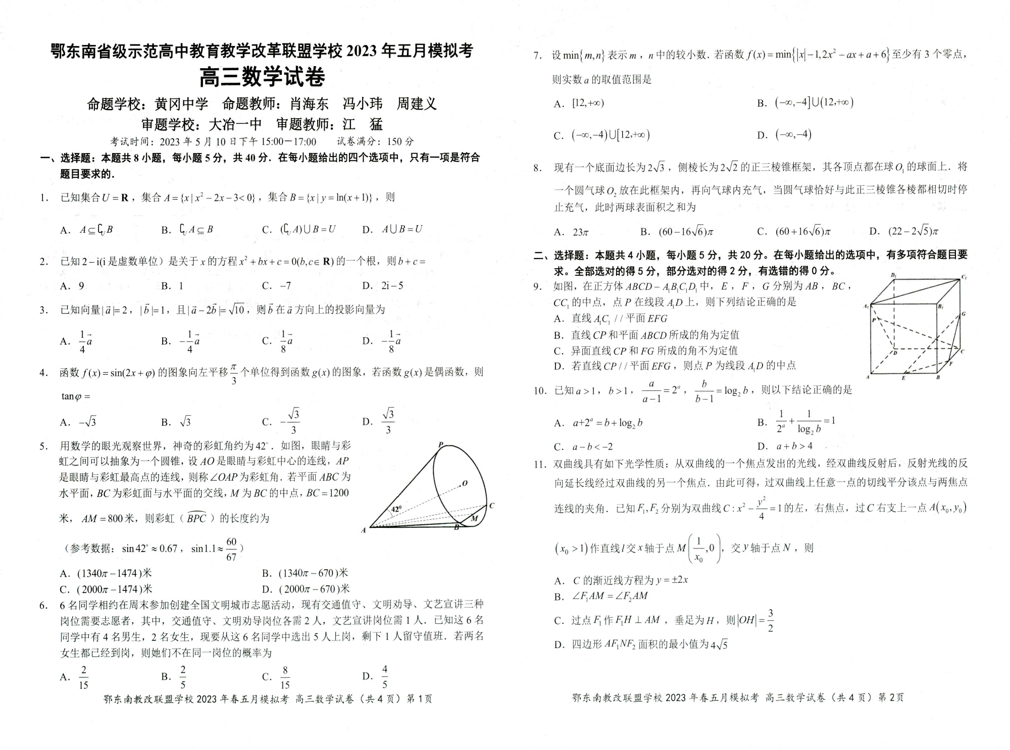 鄂东南联盟2023年五月模拟 数学