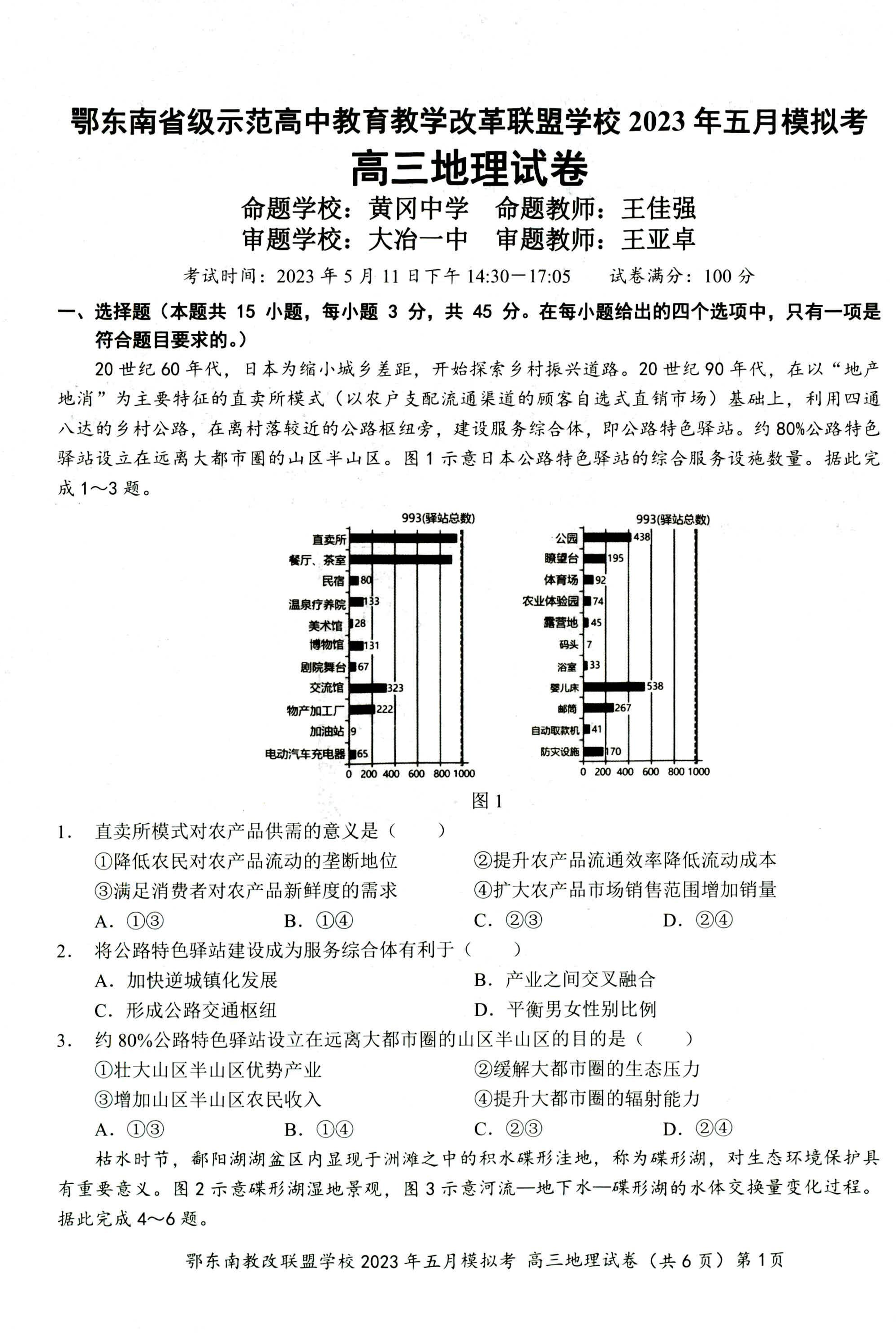 鄂东南联盟2023年五月模拟 地理
