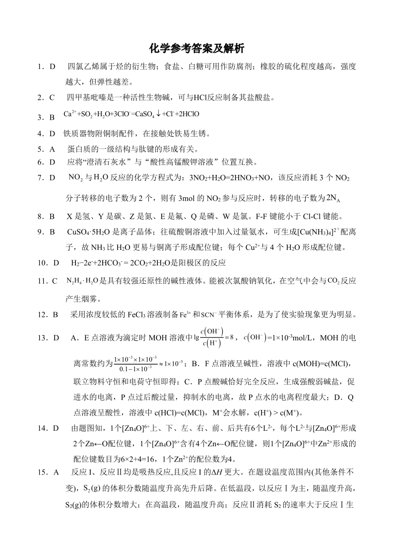 第八届湖北省高三(4月)调研模拟考试 化学答案