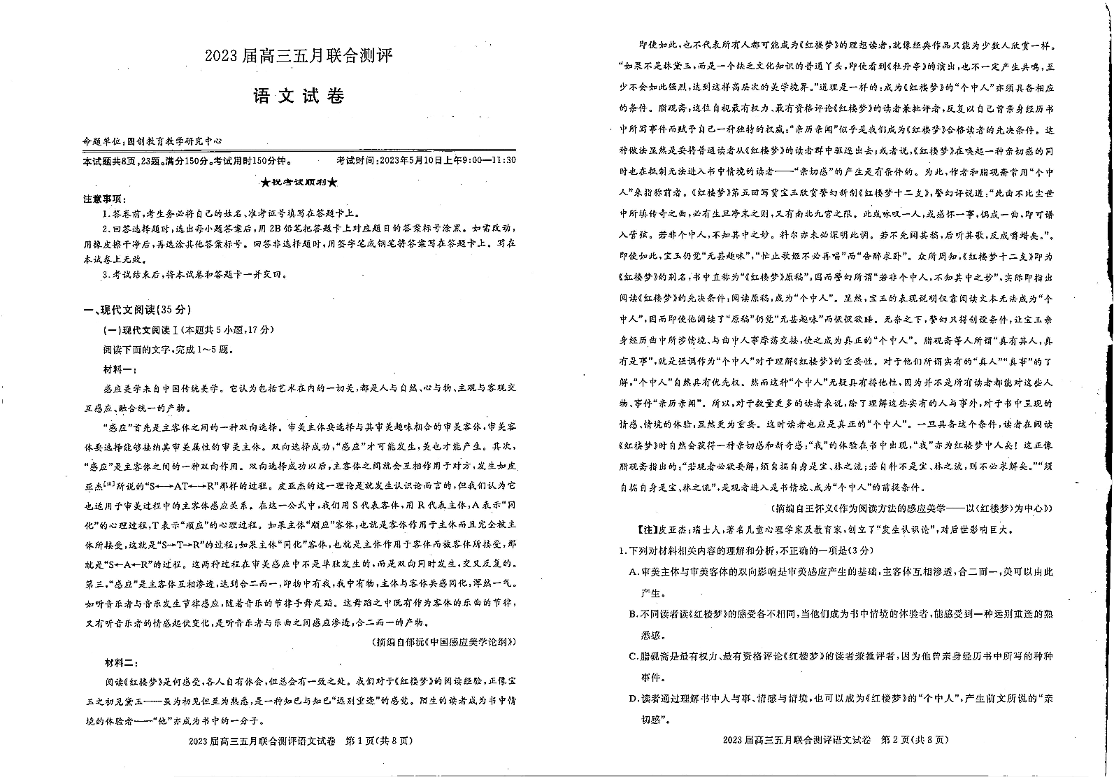 圆创教育-2023年五月高三联考-语文