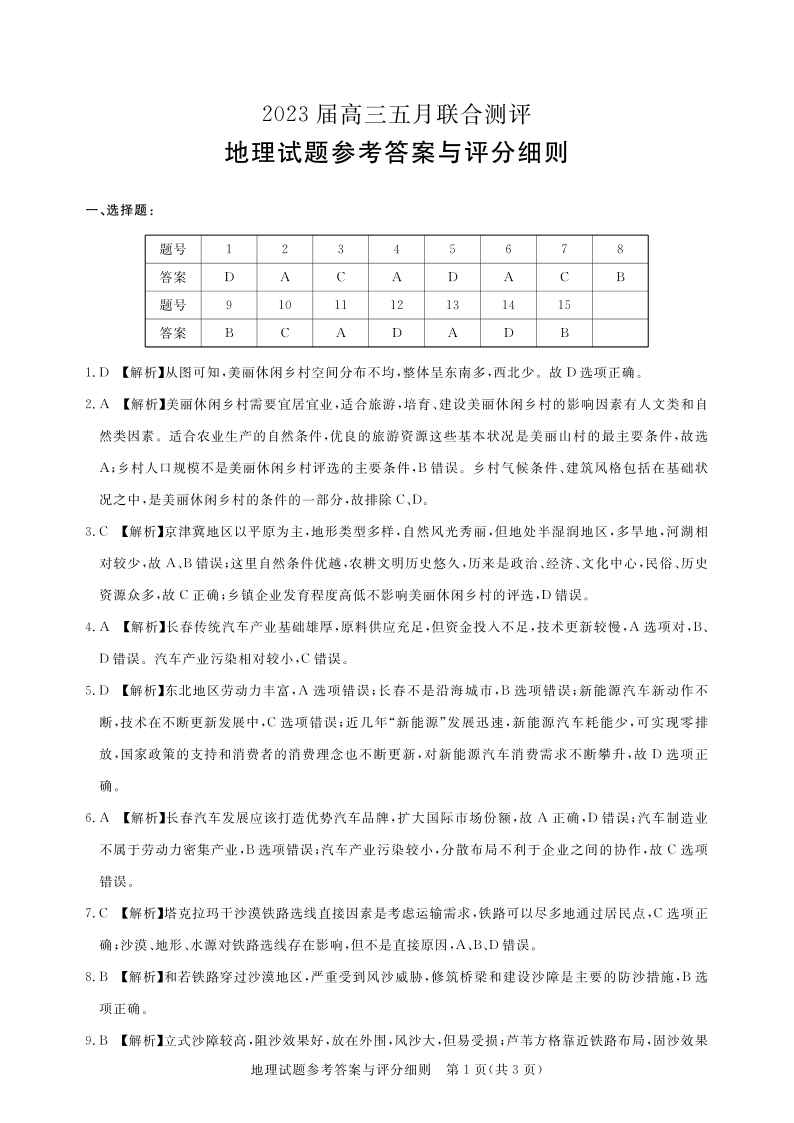 圆创教育-2023年五月高三联考-地理答案