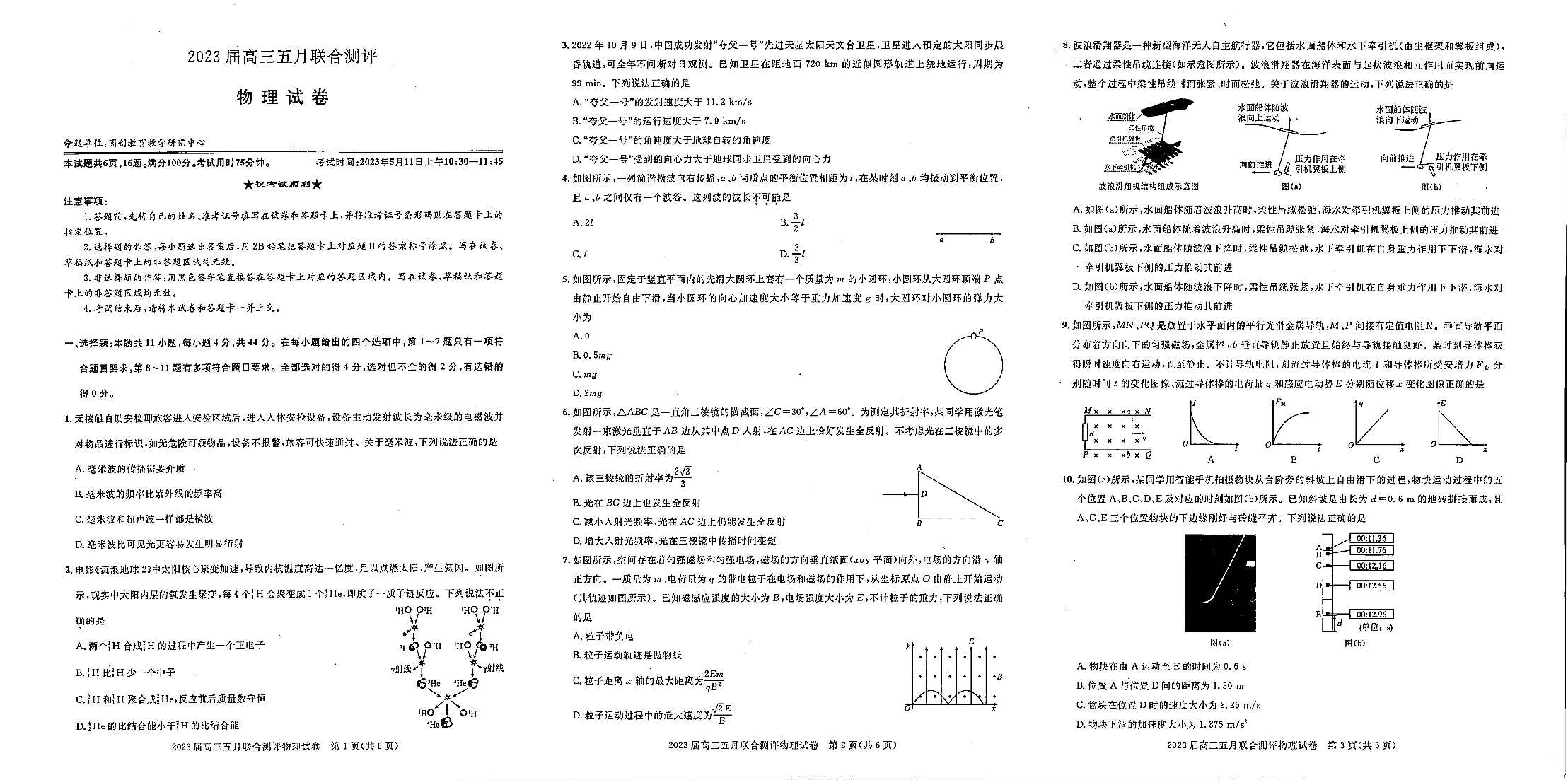 圆创教育-2023年五月高三联考-物理