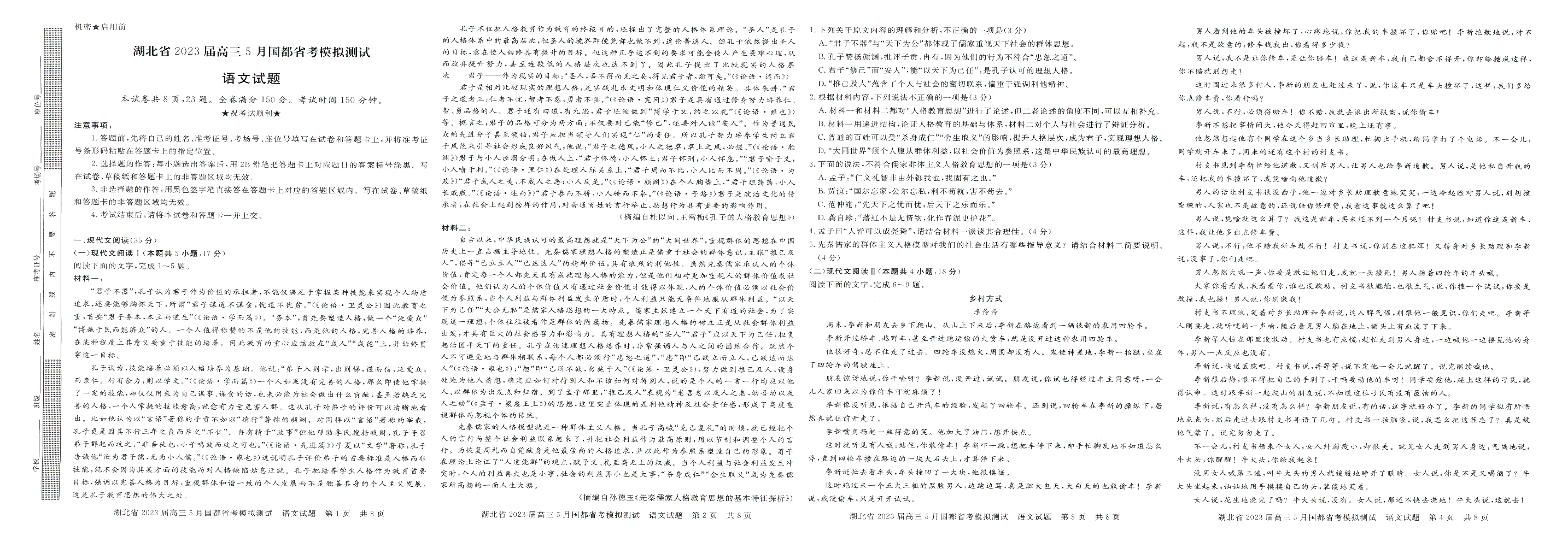 湖北省2023届高三5月国都省考模拟测试 语文