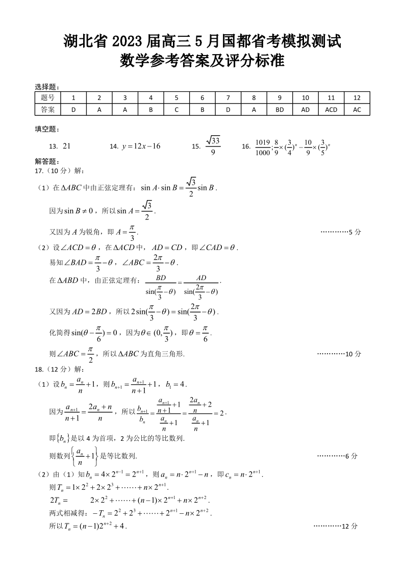 (国都省考)数学参考答案