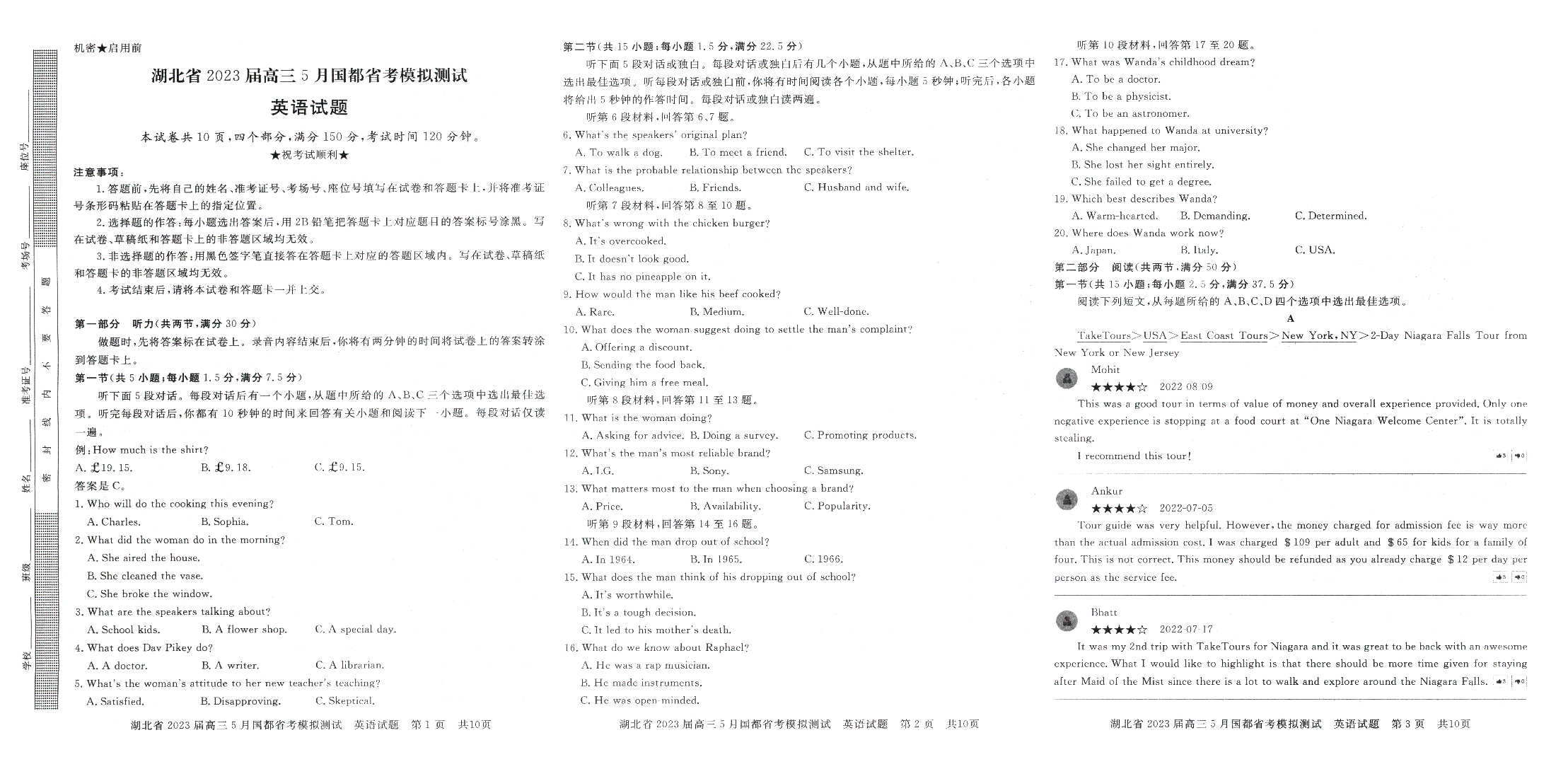湖北省2023届高三5月国都省考模拟测试 英语