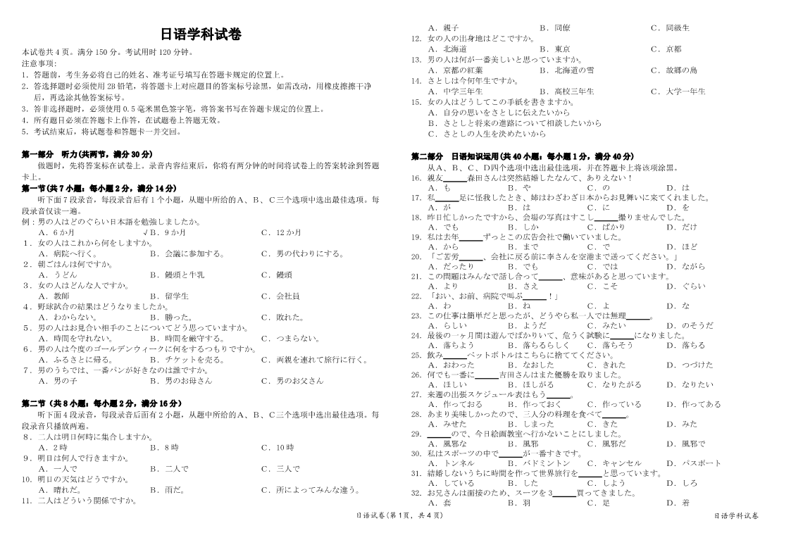 湖北省新高考联考协作体2022-2023学年高三下学期4月月考日语试题