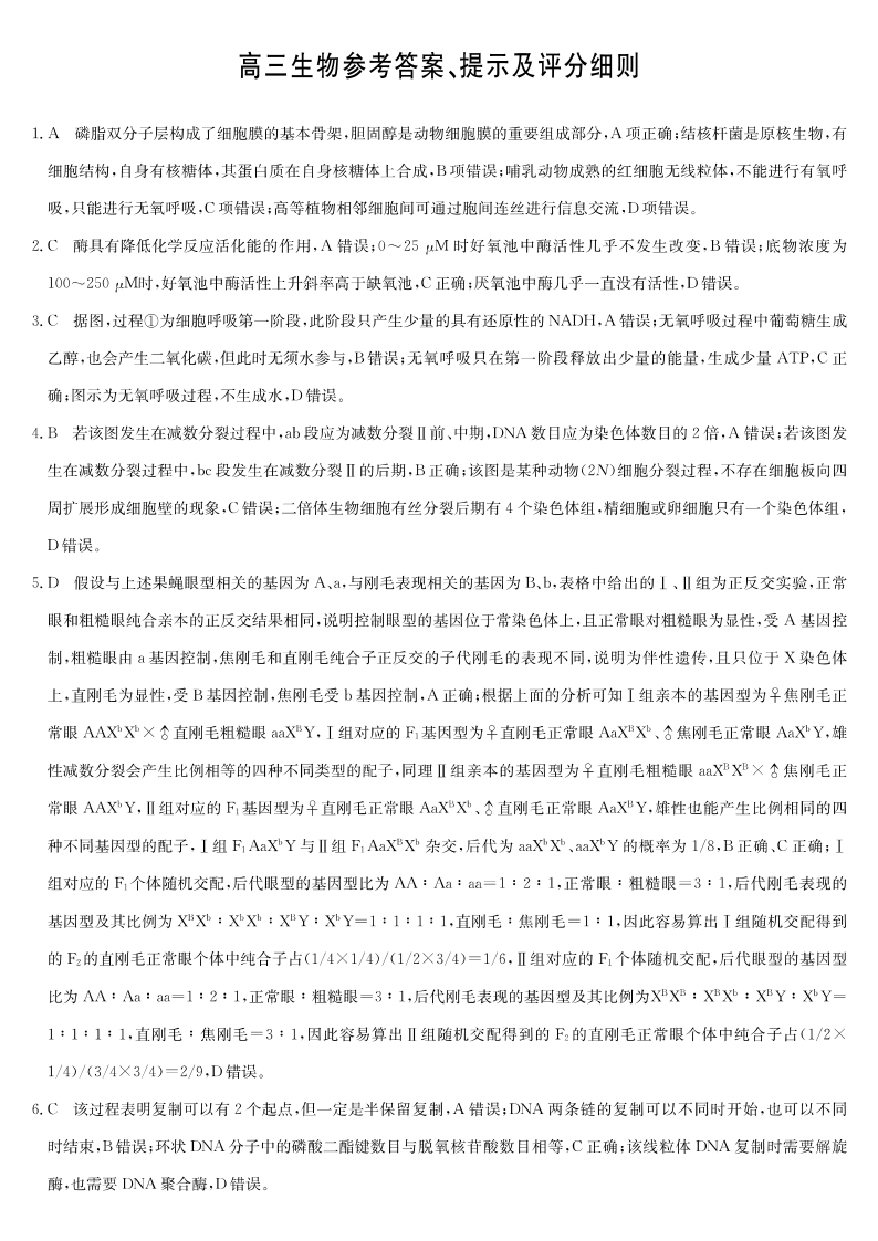 高三生物答案