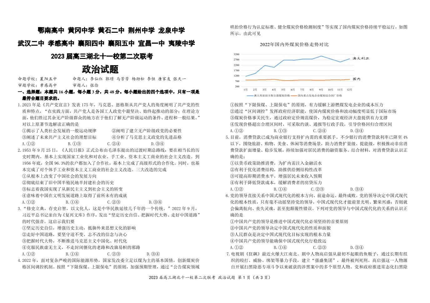 2023届高三十一校第二次联考 思想政治