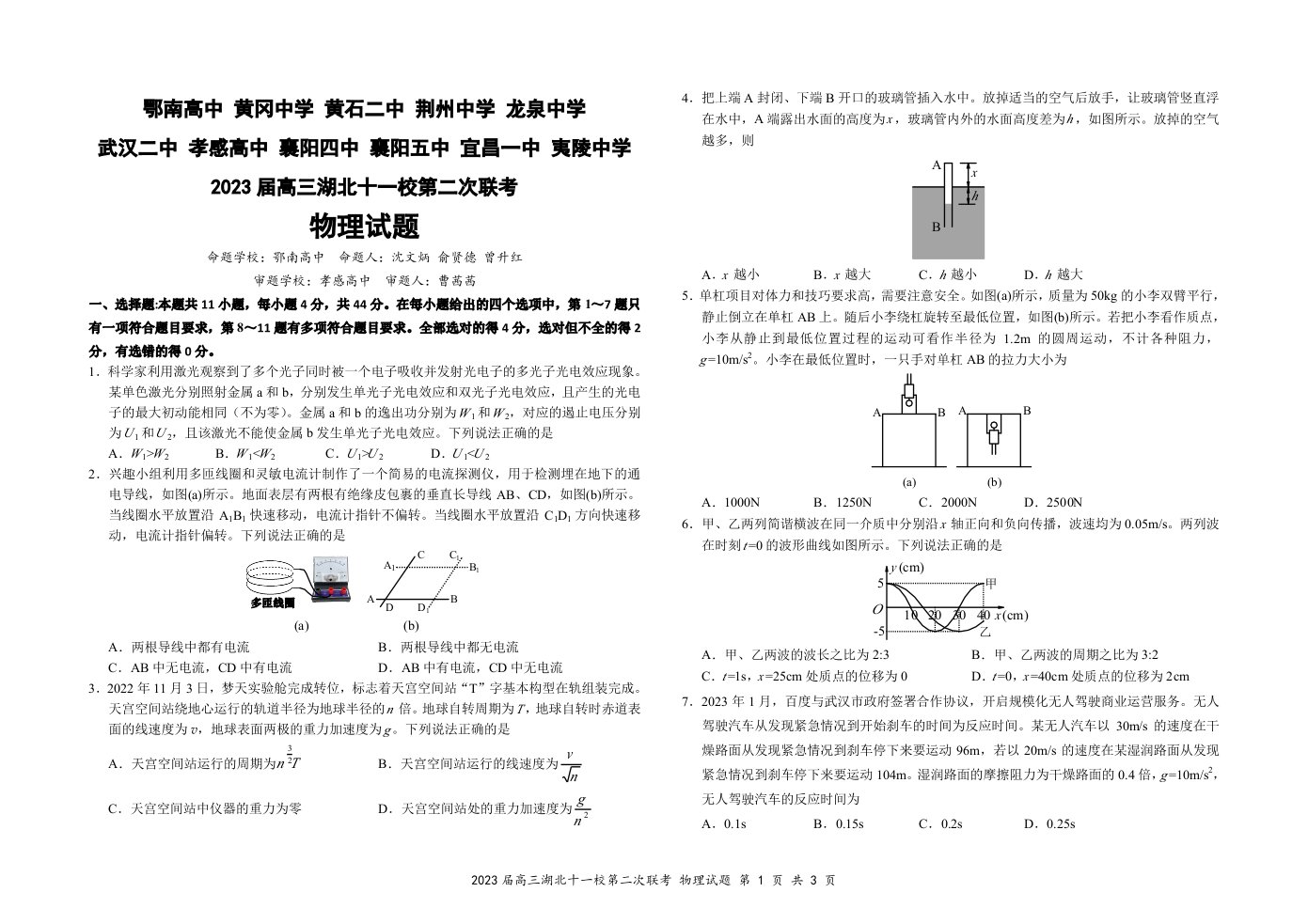 2023届高三十一校第二次联考 物理试卷