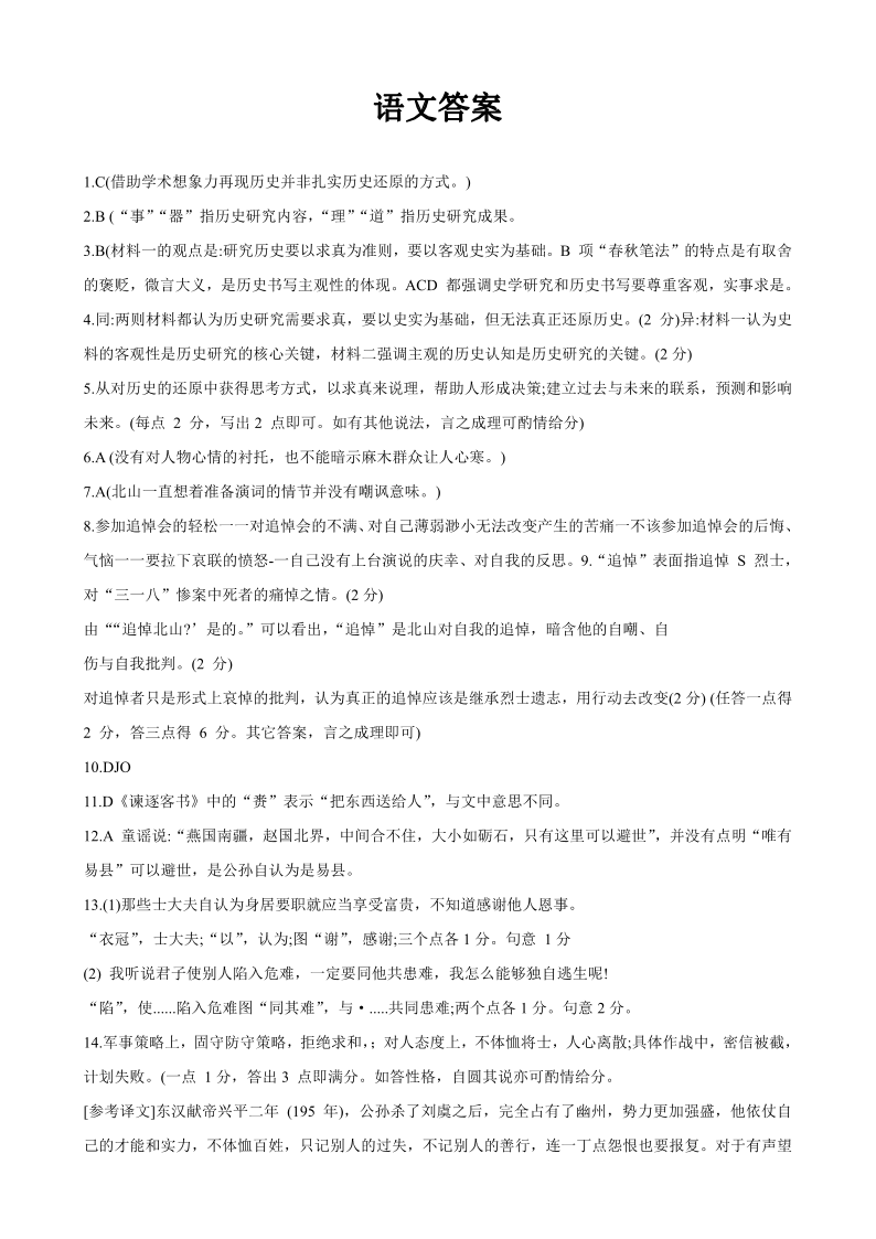 武汉市2023届高中毕业生四月调研考试+语文答案