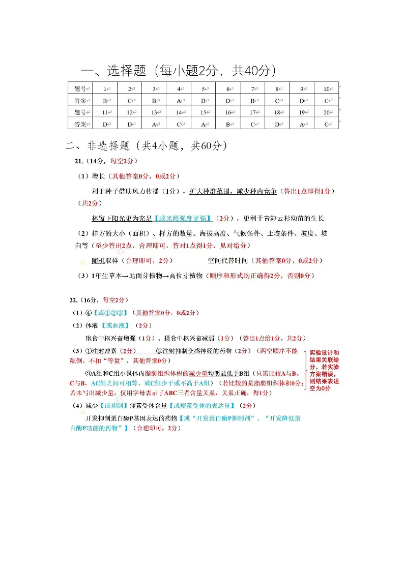 武汉市2023届高中毕业生四月调研考试+生物答案