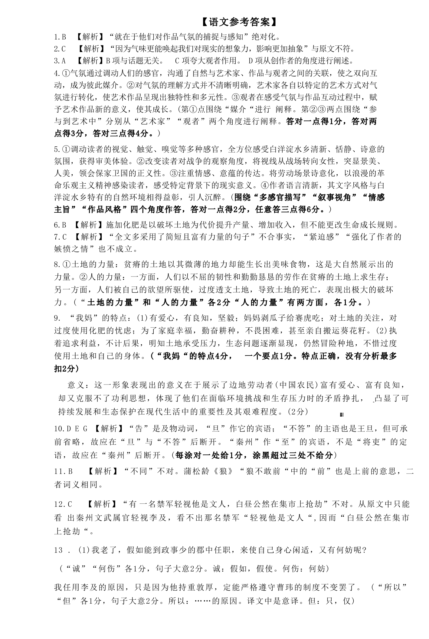 湖北省武汉市2024届部分学校高三年级九月调研考试+语文答案