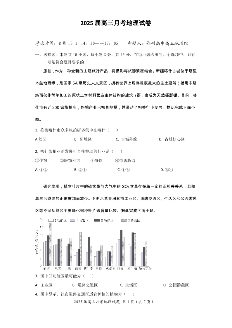 湖北省重点高中智学联盟2025届新高三8月联考考试+地理