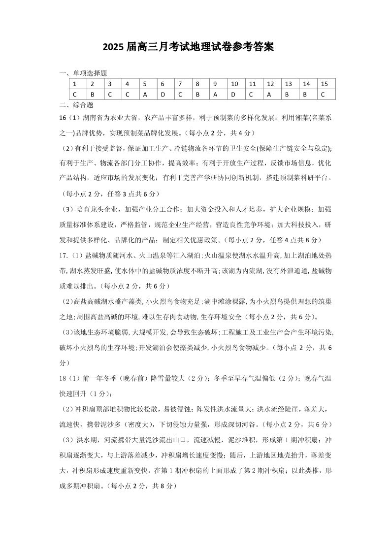 湖北省重点高中智学联盟2025届新高三8月联考考试+地理答案