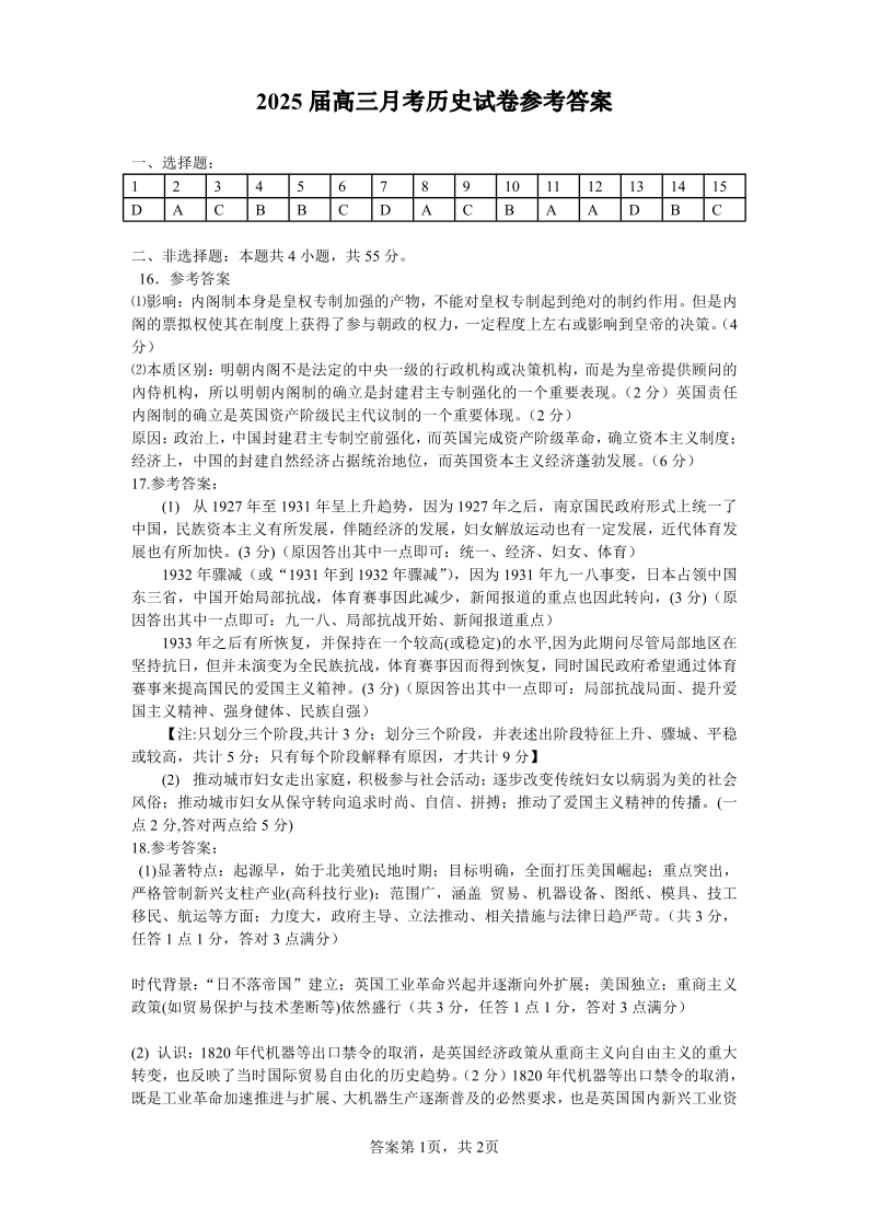 湖北省重点高中智学联盟2025届新高三8月联考考试+历史答案
