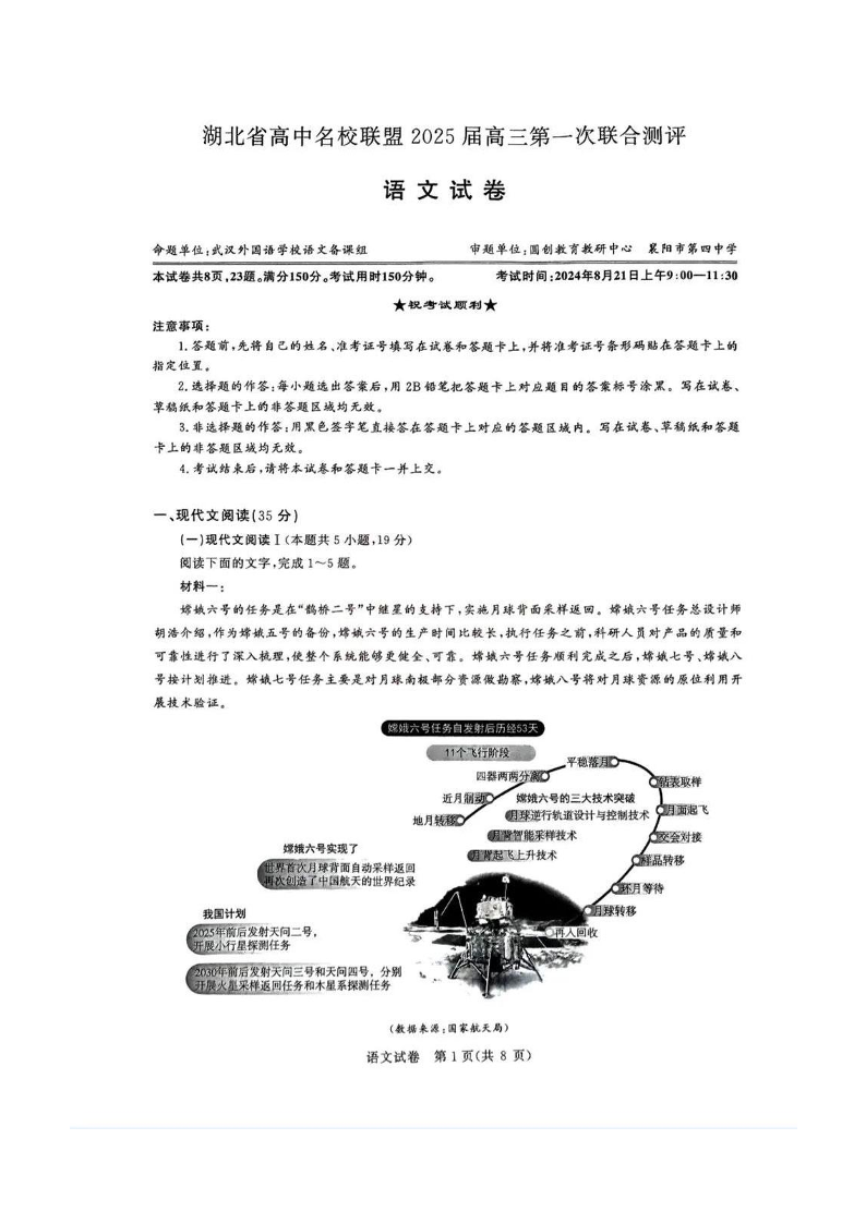 湖北省高中名校联盟2025届高三第一次联合测评+语文