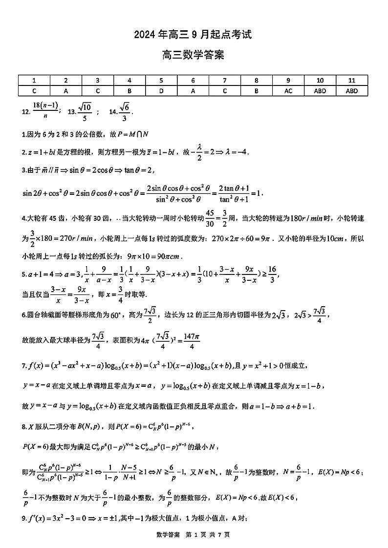 湖北省新高考联考协作体2025届高三上学期开学考试+数学答案
