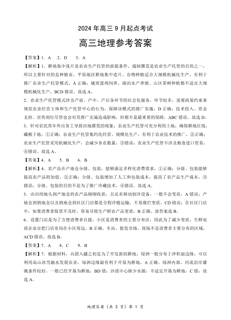 湖北省新高考联考协作体2025届高三上学期开学考试+地理答案