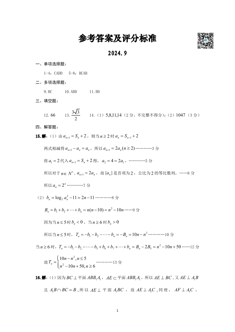 湖北省“宜荆荆恩”2025+届高三9月起点考试+数学答案