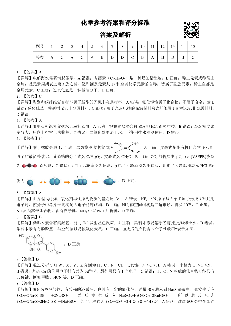 湖北省“宜荆荆恩”2025+届高三9月起点考试+化学答案