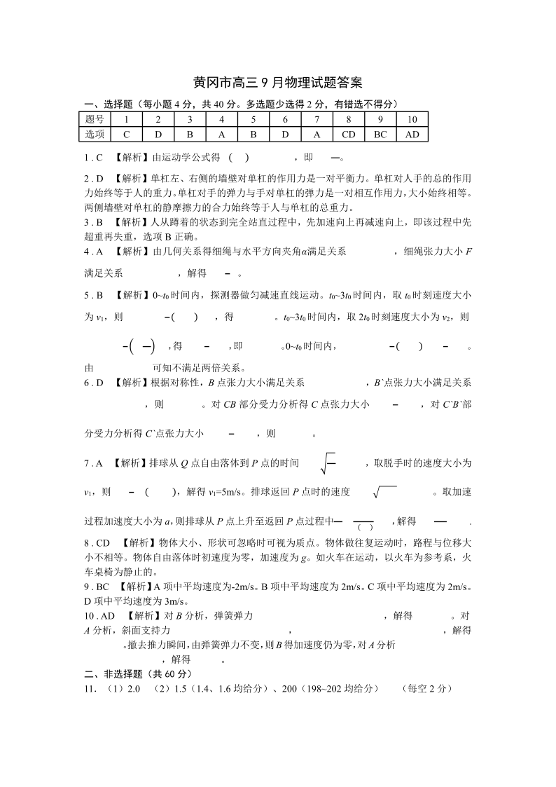 湖北省黄冈市2024年高三年级9月调研考试+物理答案
