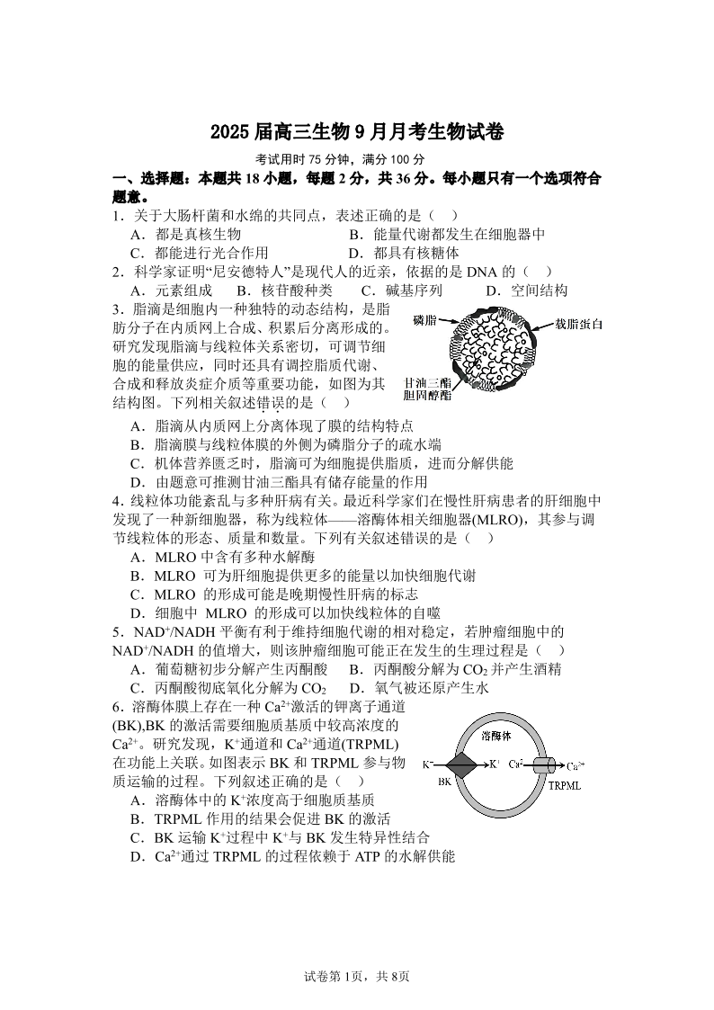 湖北省宜城市第一中学2024-2025学年高三上学期9月月考+生物