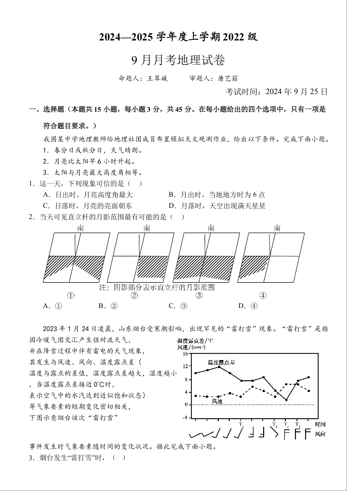 湖北省沙市中学2024-2025学年高三上学期9月月考试题+地理