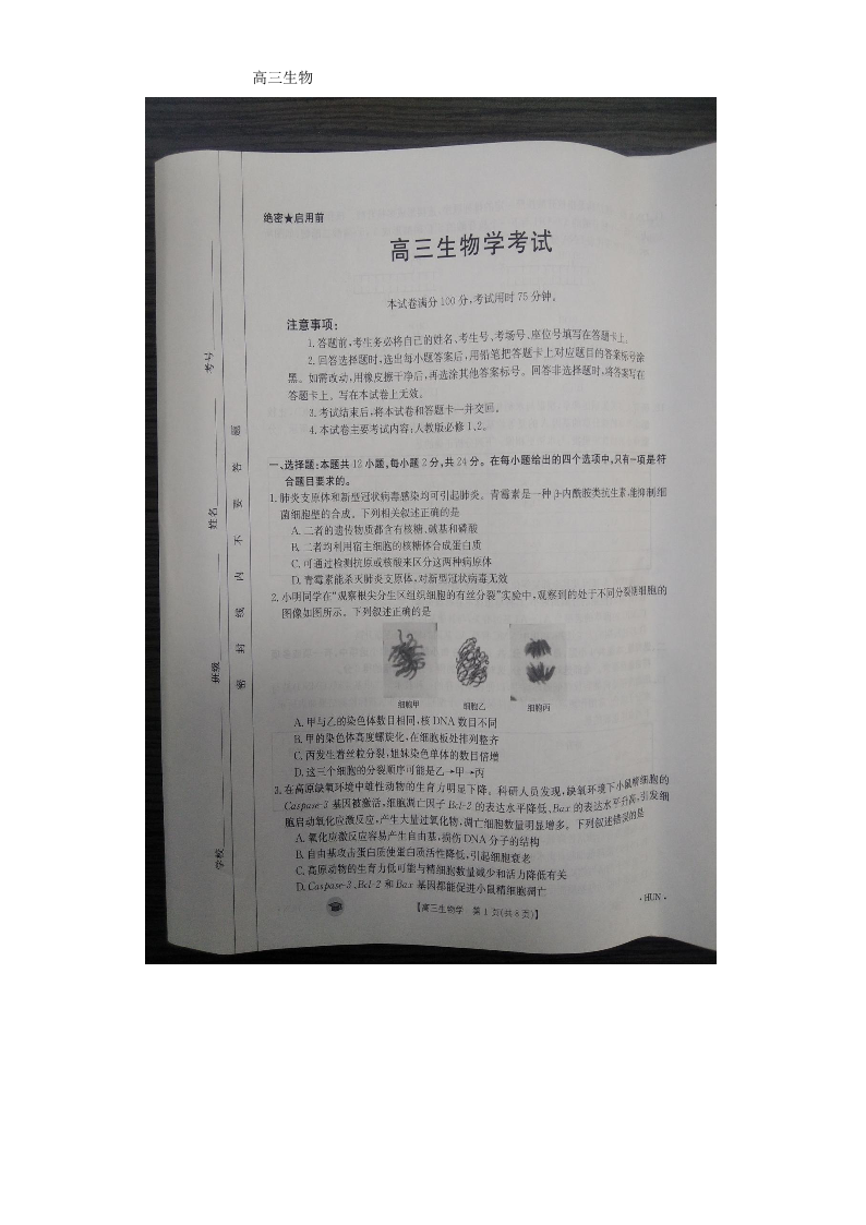 2024届湖南省衡阳市衡南县高三上学期11月期中考试 生物