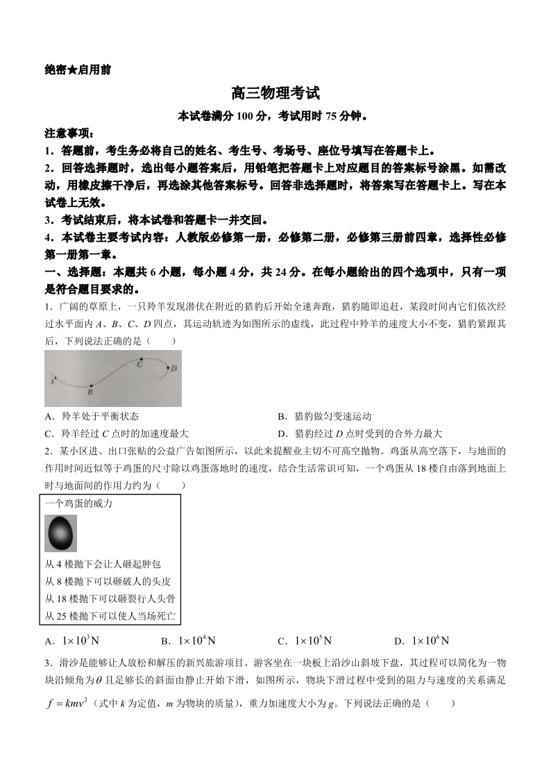 2024届湖南省衡阳市衡南县高三上学期11月期中考试 物理