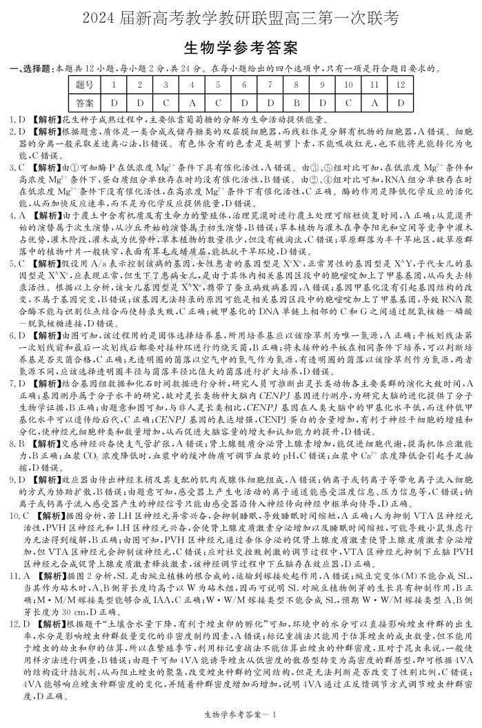 2024届湖南省新高考教学教研联盟高三下学期第一次联考 生物答案