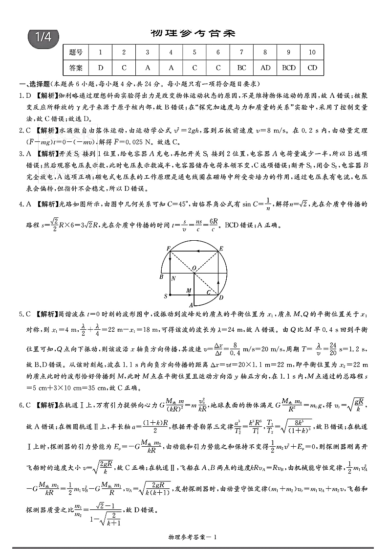 2024届湖南省新高考教学教研联盟高三下学期第一次联考 物理答案