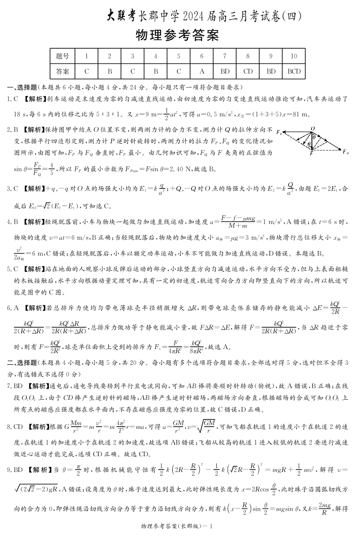 湖南省长沙市长郡中学2023-2024学年高三上学期月考(四)物理答案