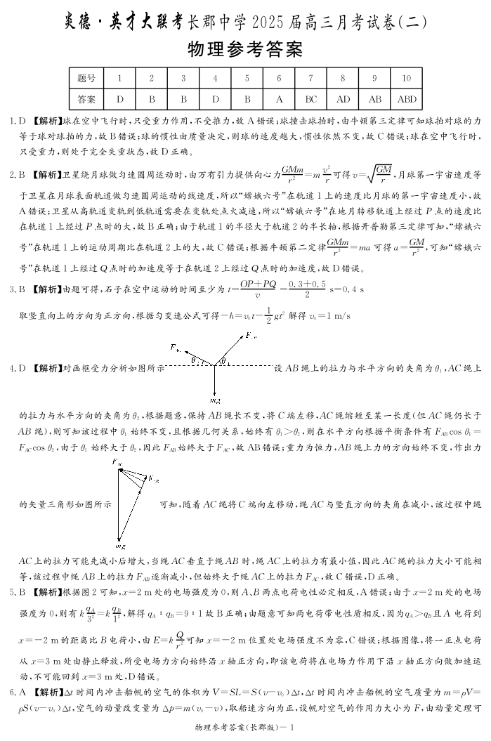 湖南省长沙市长郡中学2025届高三上学期月考(二)物理答案